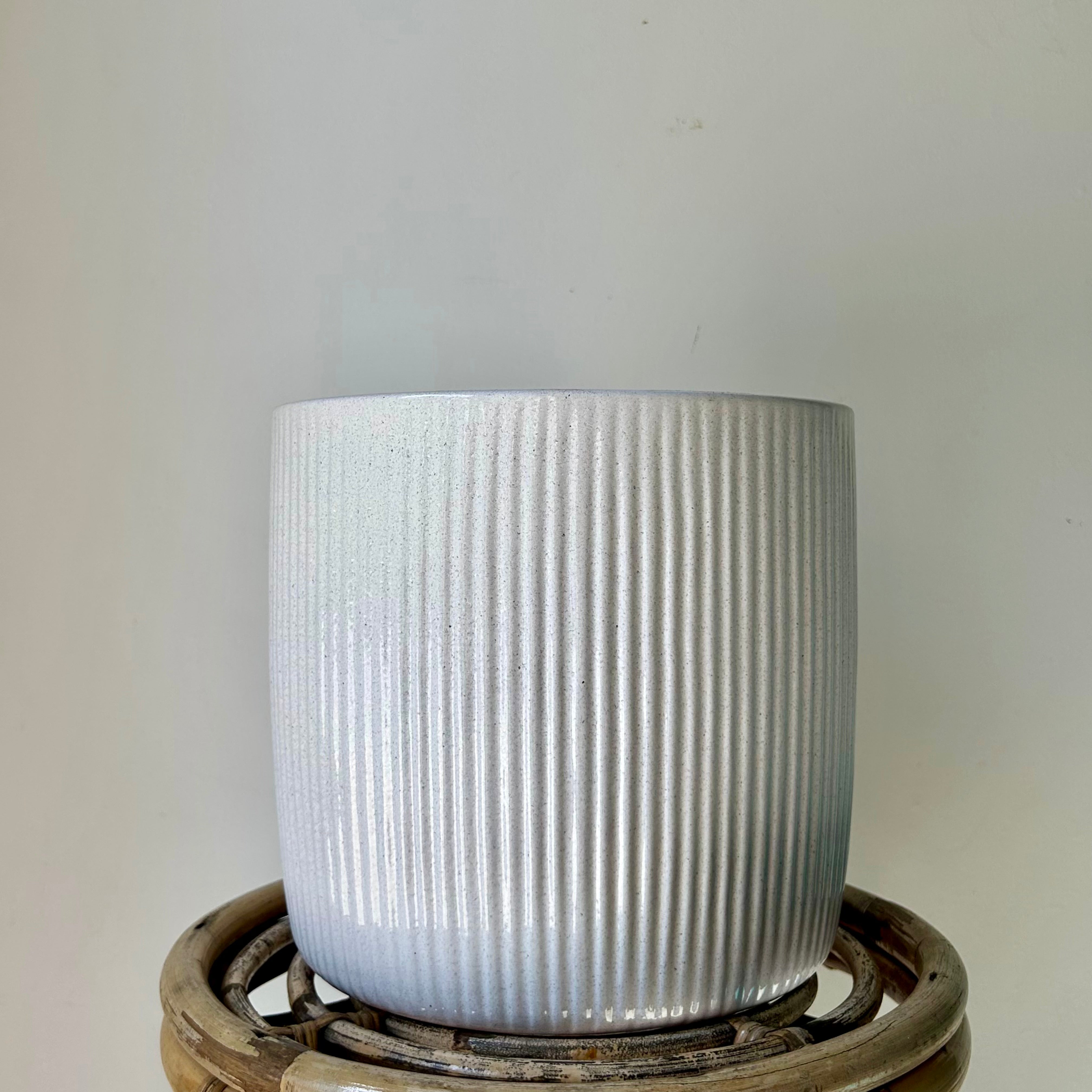 Decorative Striped Cylinder planter (9.5”X10”) GLOSSY PEARL
