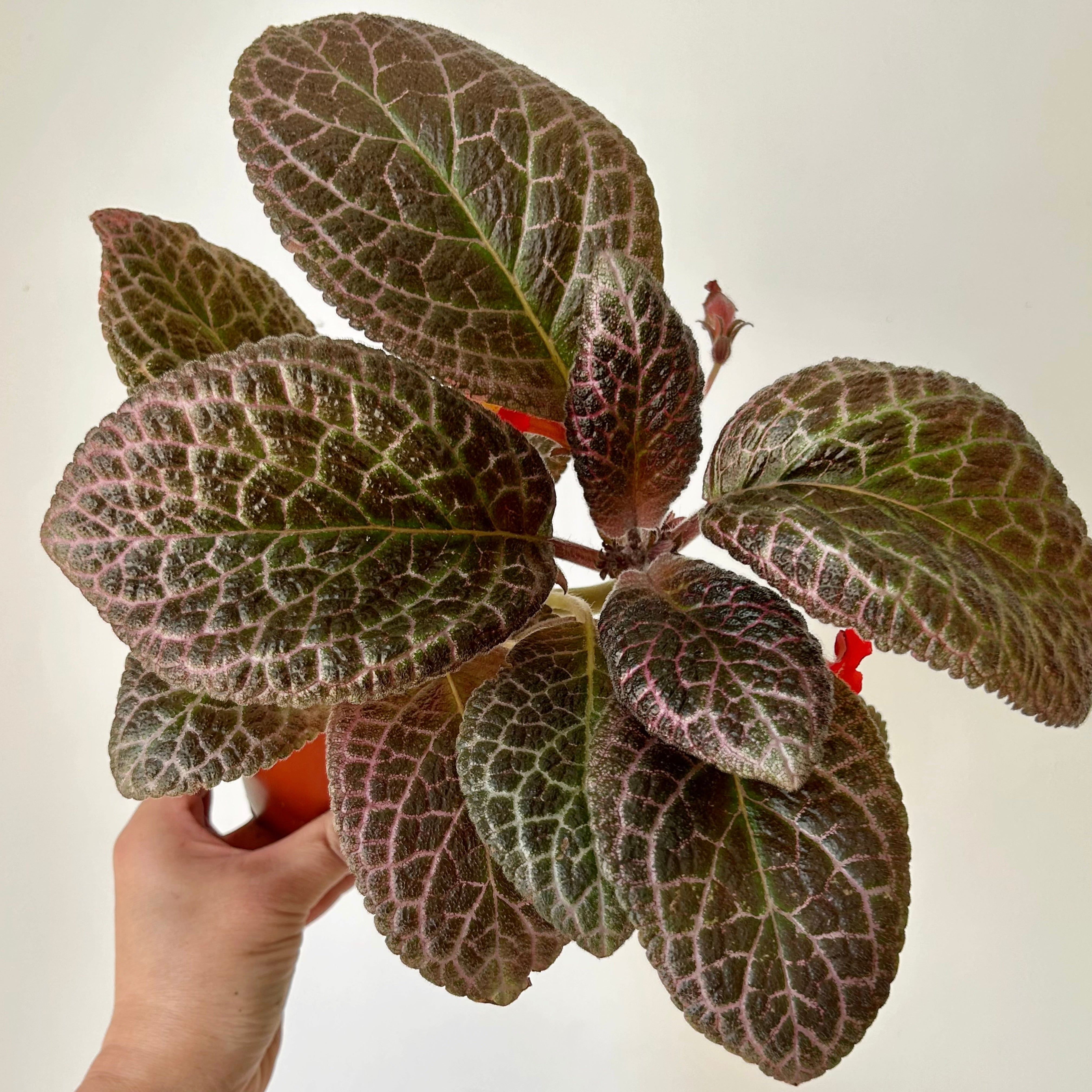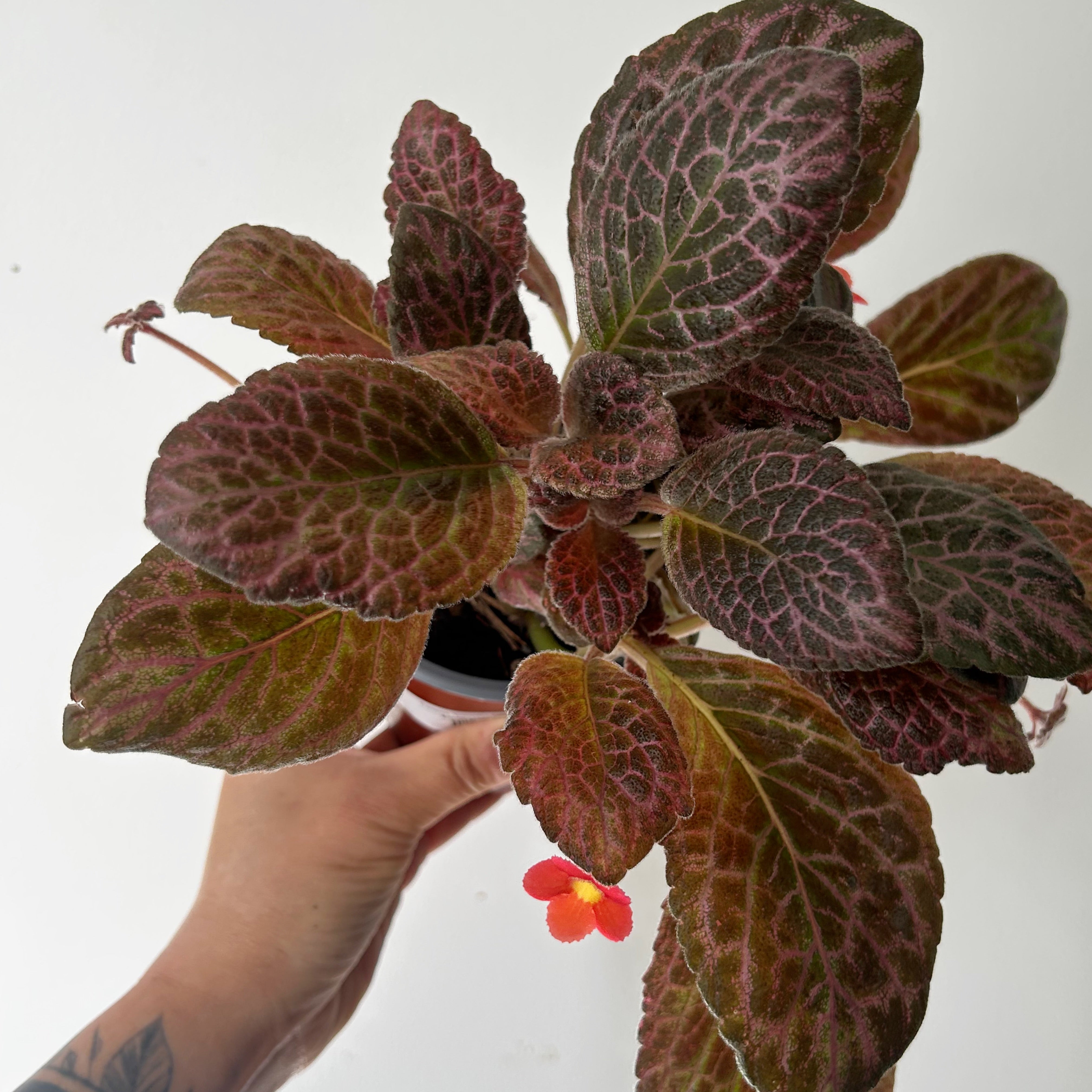 Episcias are prized for their richly textured, velvety leaves and small, tubular flowers they produce. These blooms, typically bright red, orange, pink, or yellow, contrast beautifully with the foliage and add a vibrant touch to the plant’s appearance.
