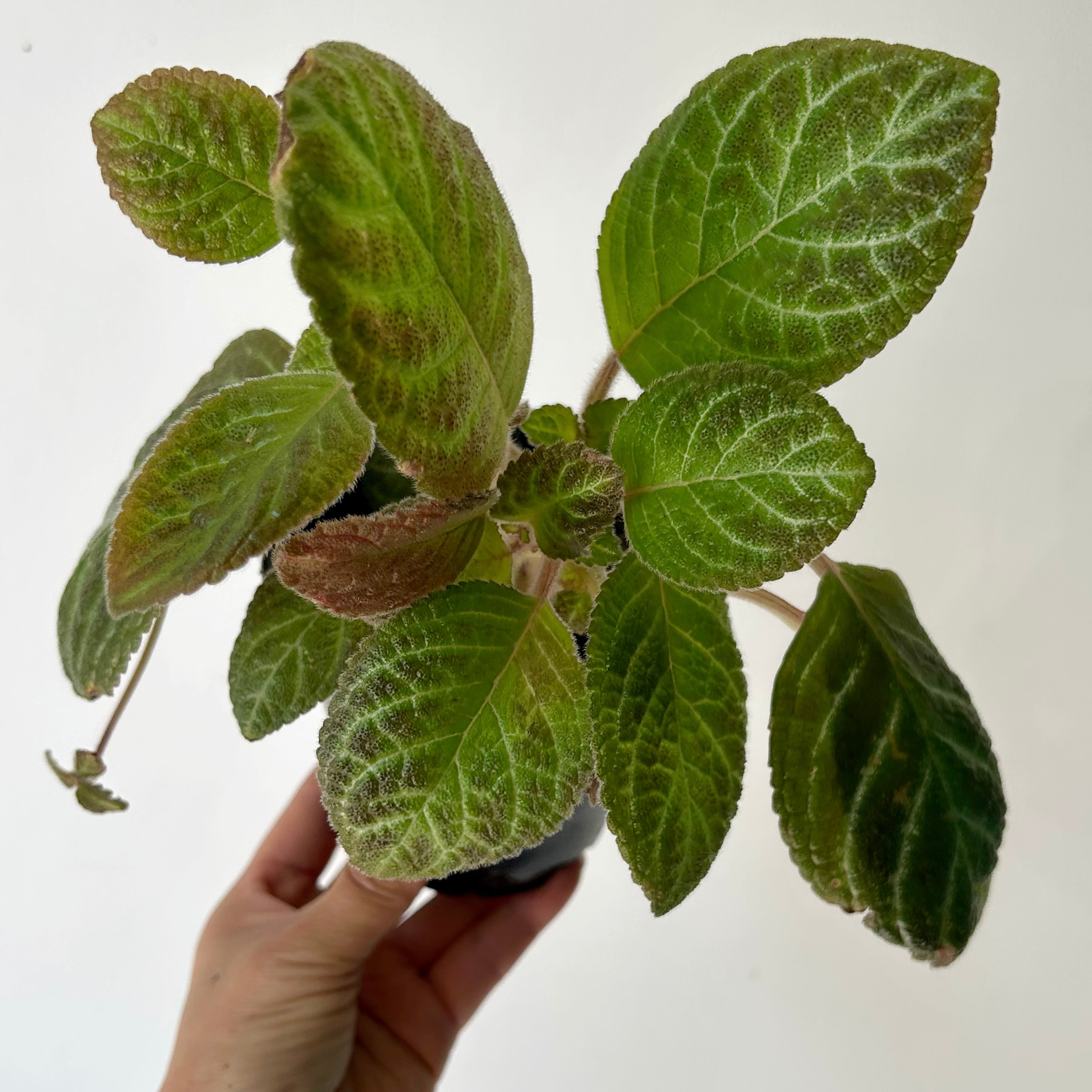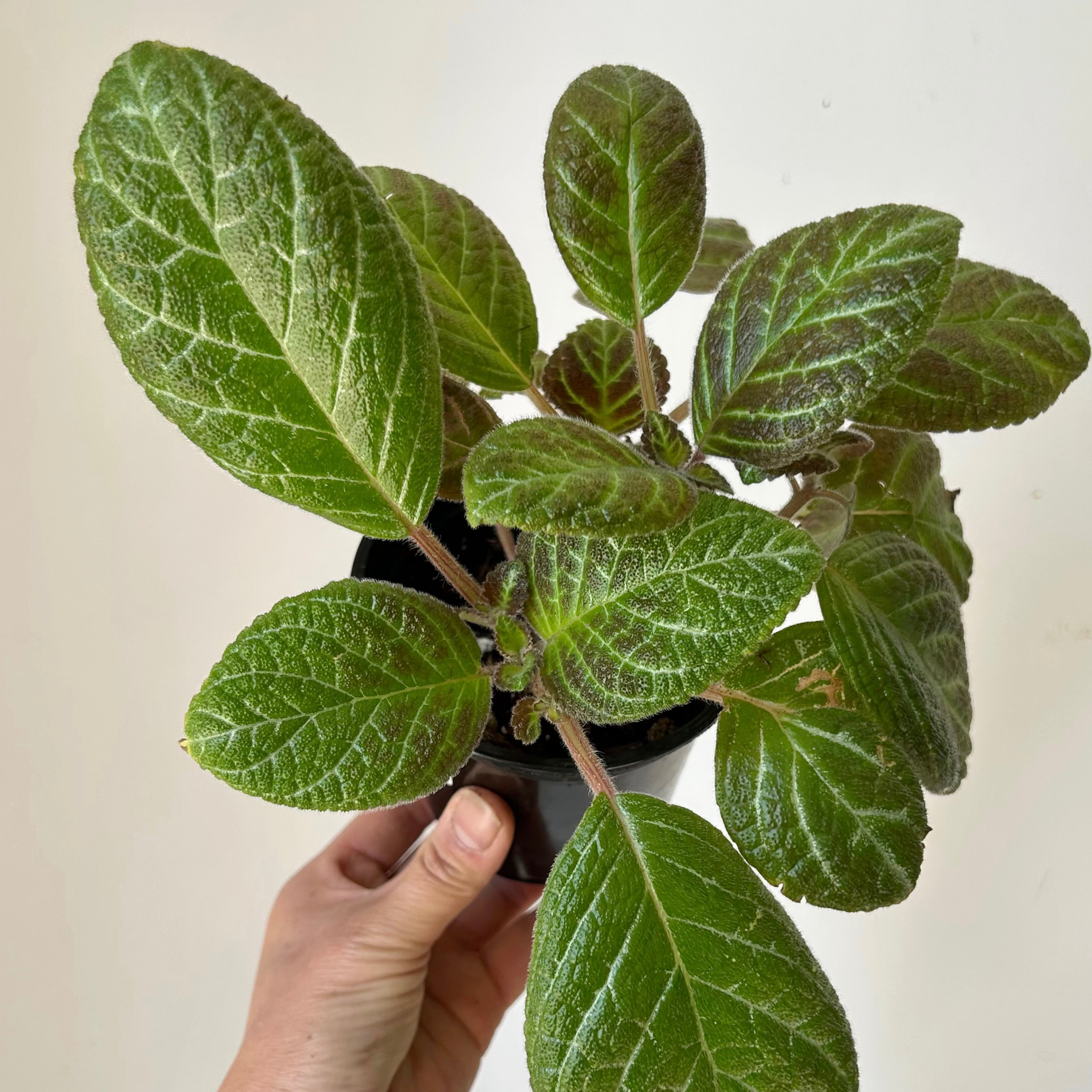 Episcias are prized for their richly textured, velvety leaves and small, tubular flowers they produce. These blooms, typically bright red, orange, pink, or yellow, contrast beautifully with the foliage and add a vibrant touch to the plant’s appearance.