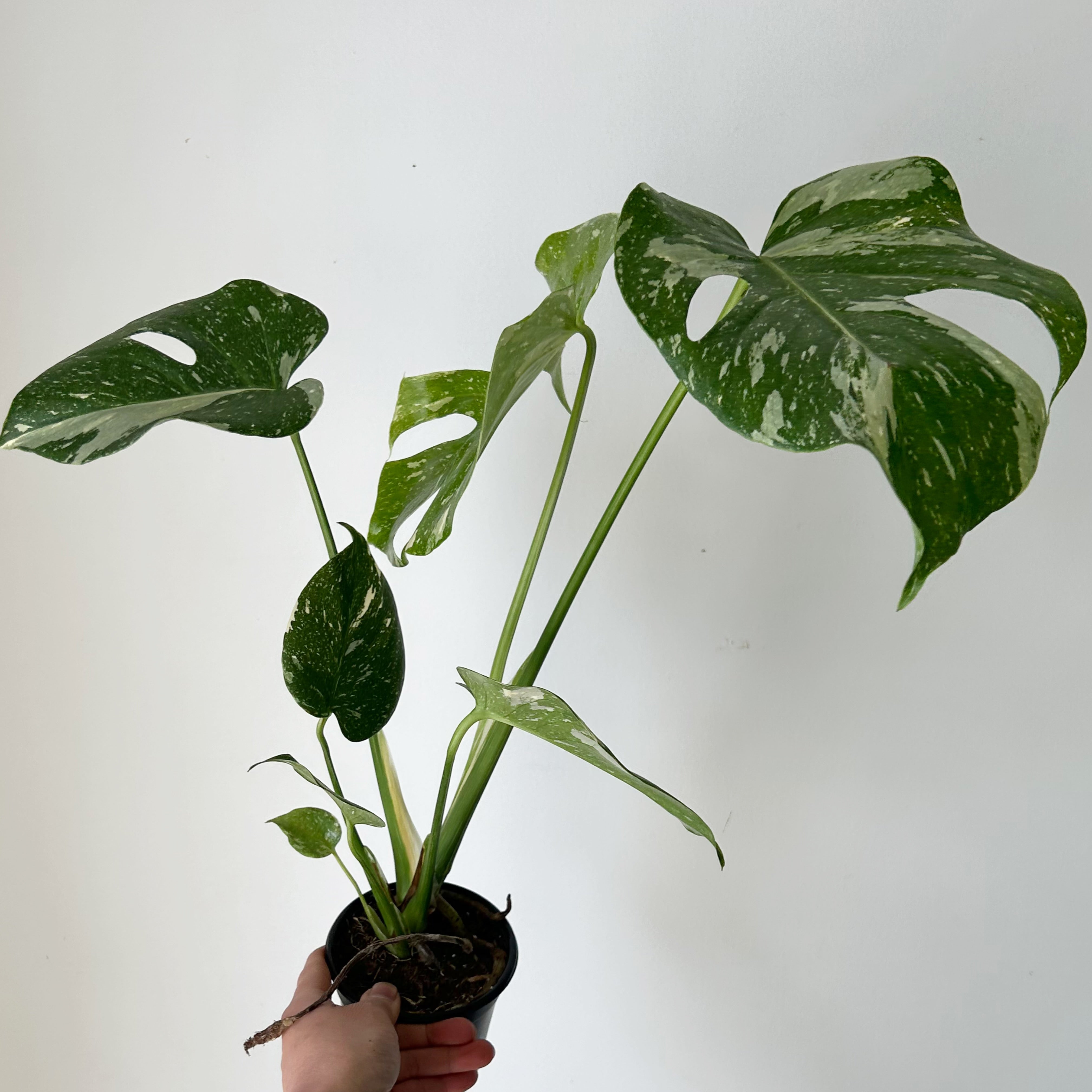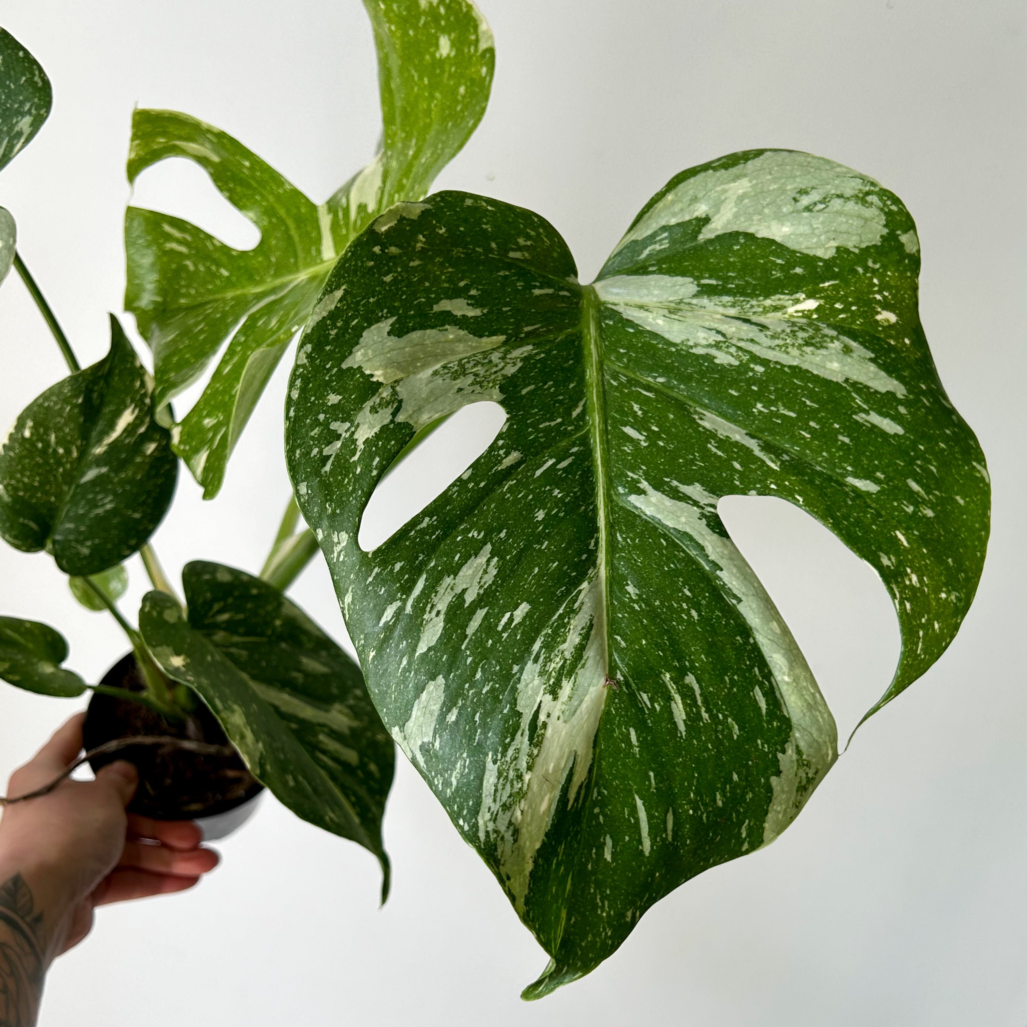 Monstera Thai Constellation features speckles of cream to light yellow patterns- each leaf a celestial canvas, resembling constellations in the night sky, hence its name.