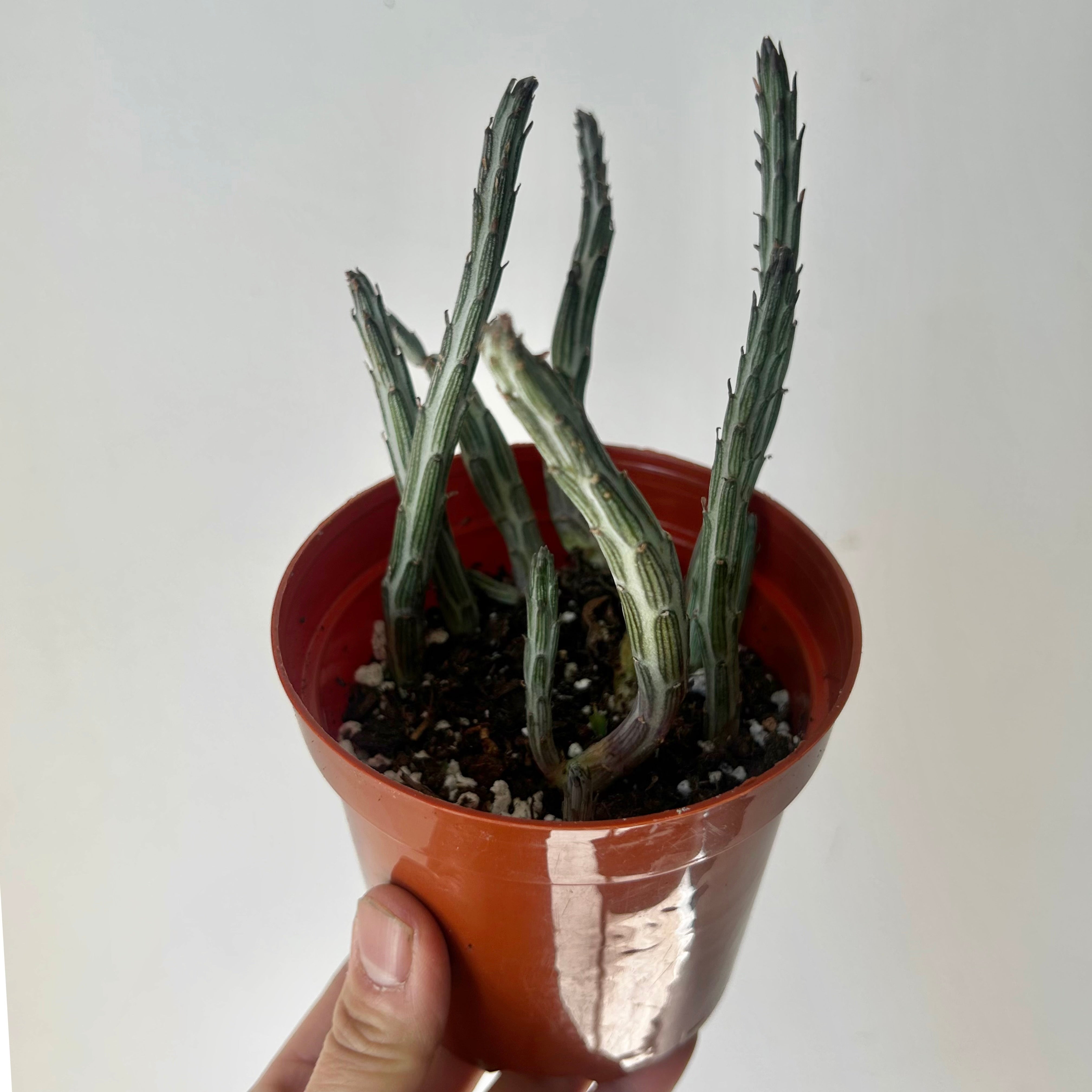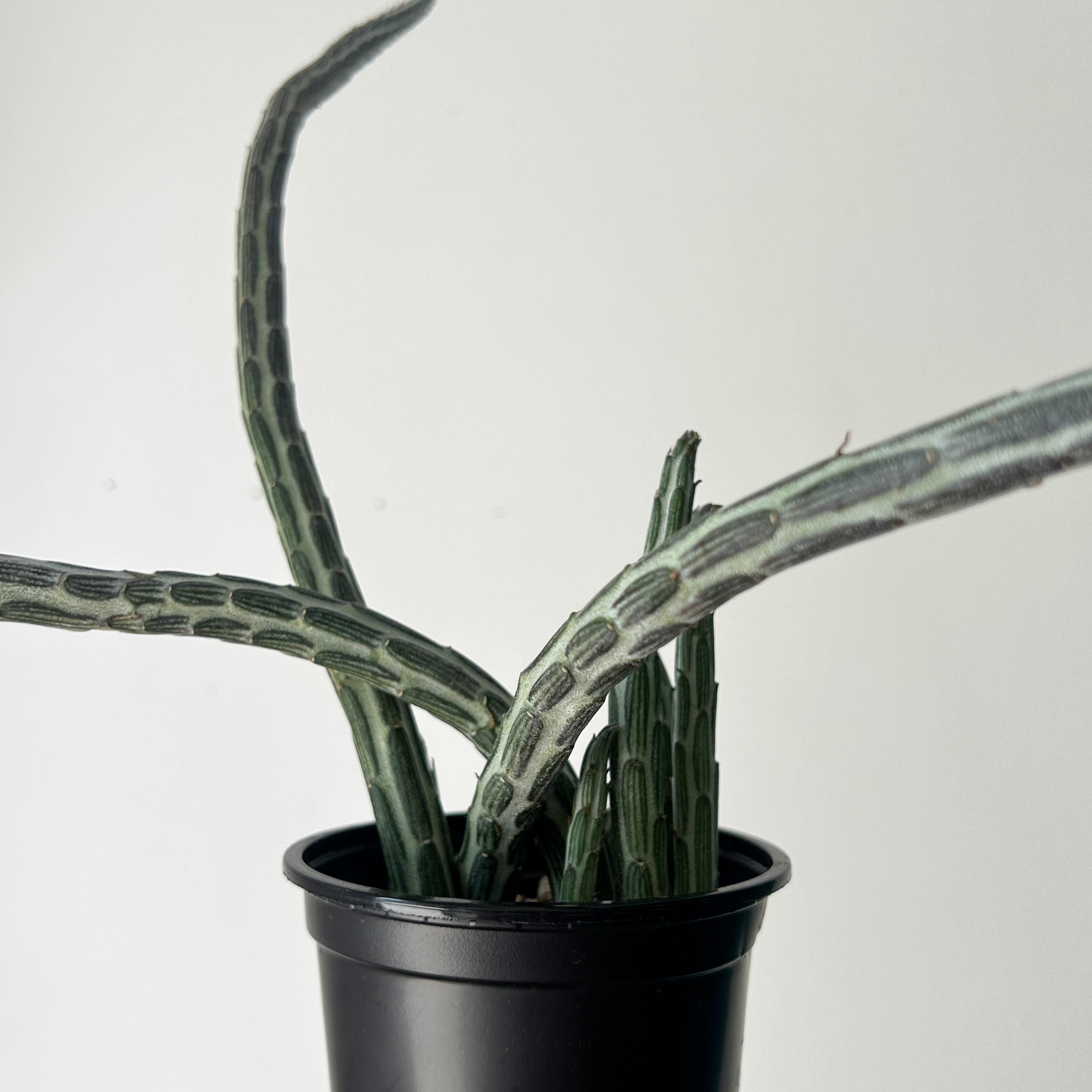 This succulent originates from Madagascar. It has attractive textured cylindrical stems. It's sometimes referred to as a "pickle plant."