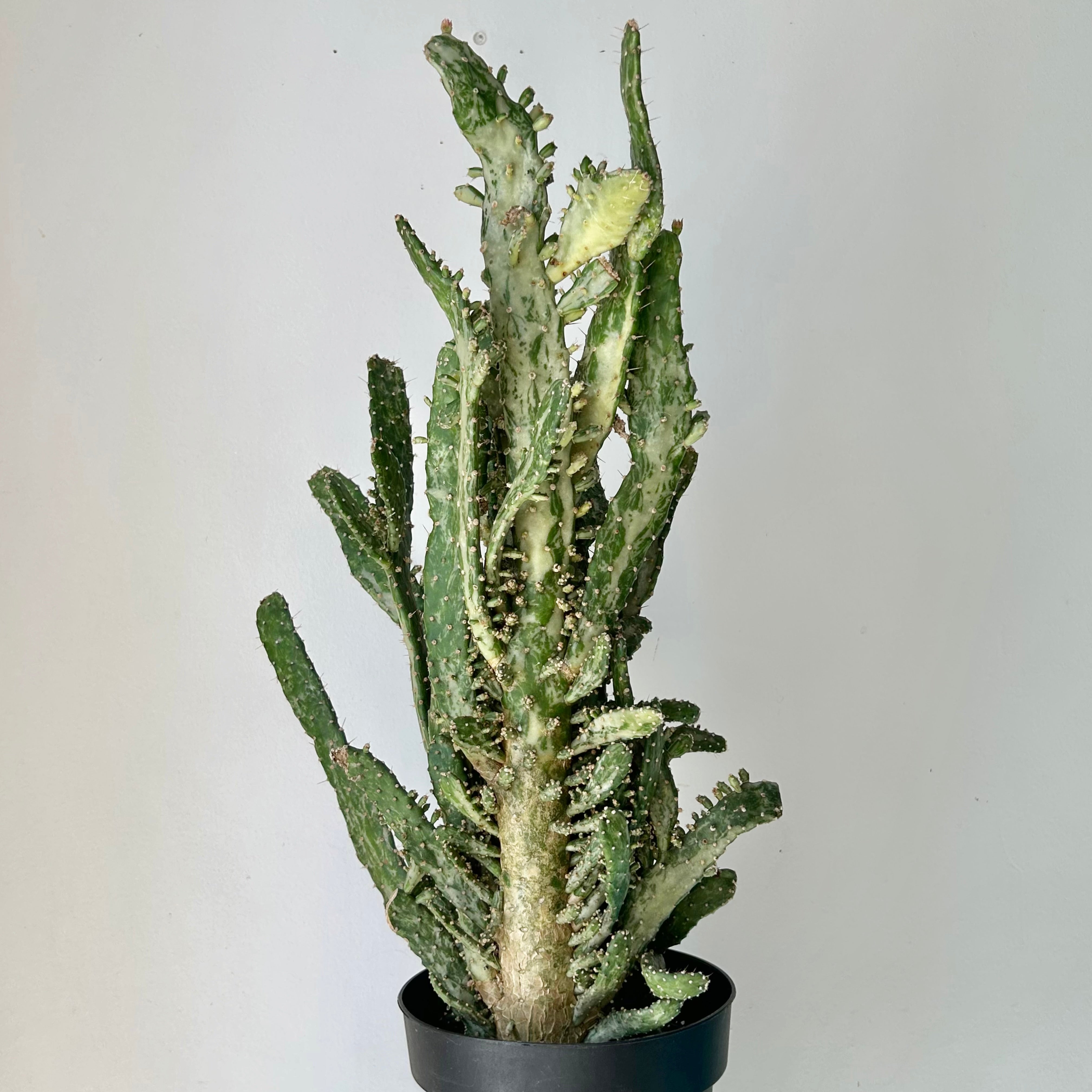 Variegated Opuntia “Joseph’s Coat” (two stalks) approximately 2 ft tall in 6.5”pot
