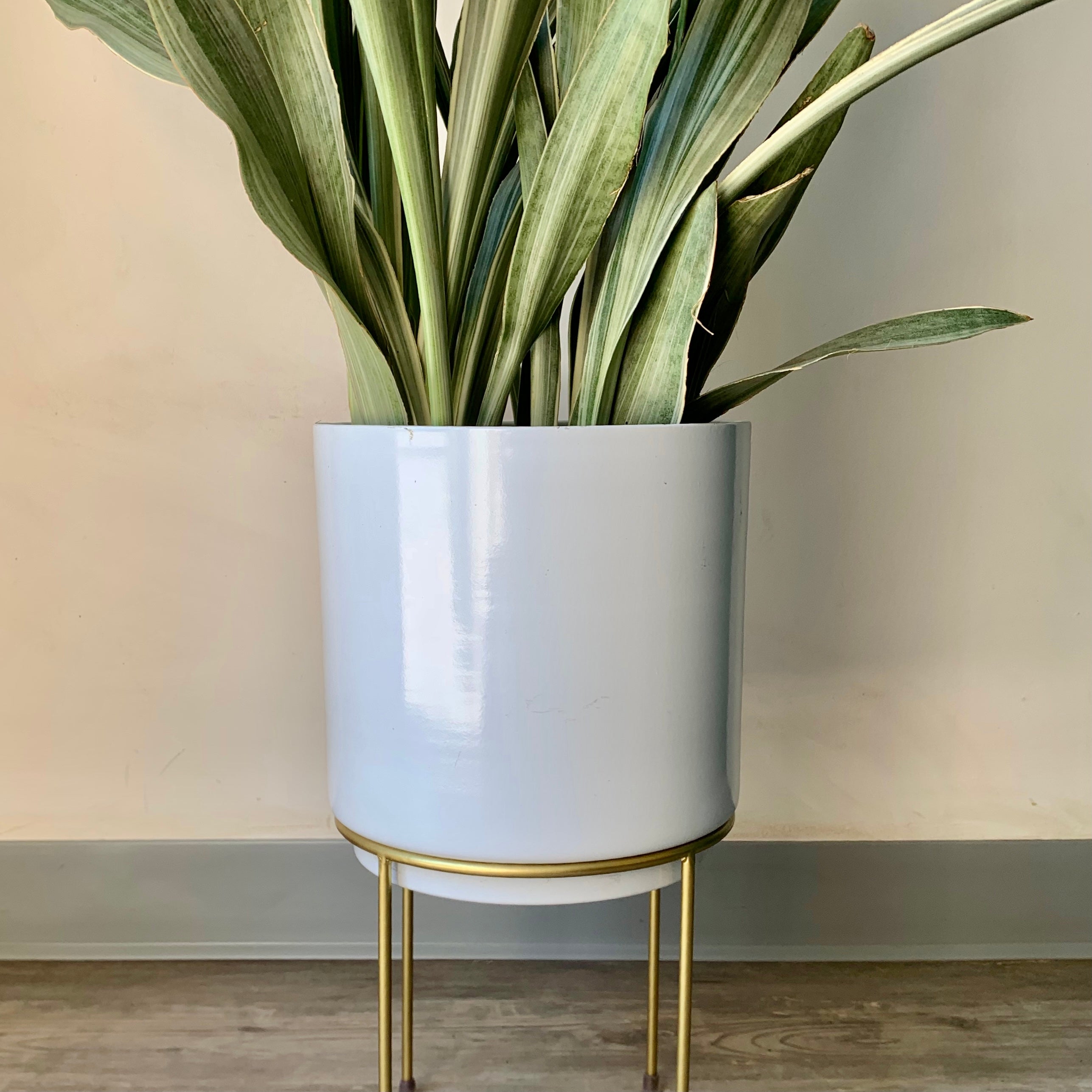 NOELLE Glossy White Mid Century Planter Gold Metal Stand