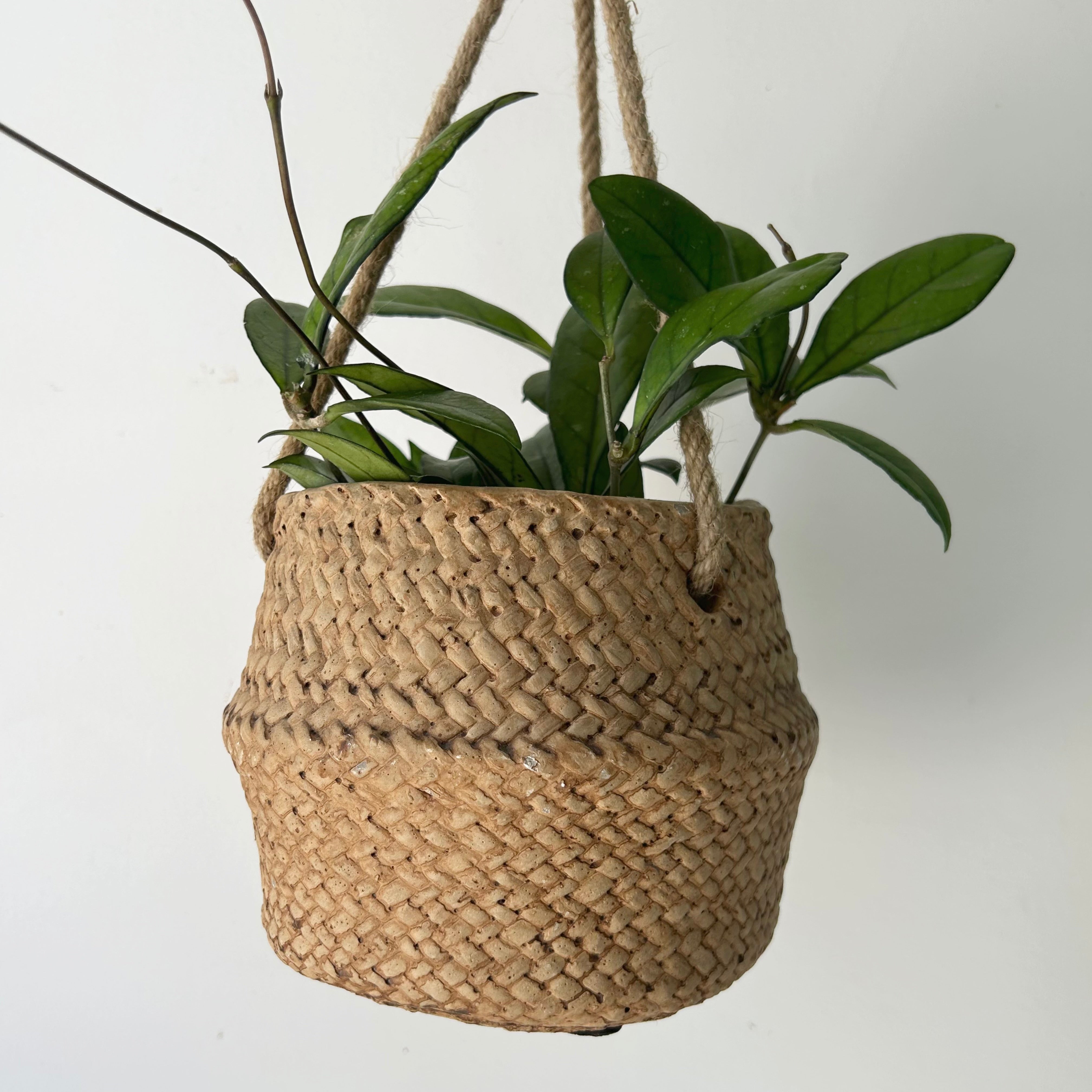 HAVEN Decorative hanging cement pot (rattan textured design) 4.75”x5”