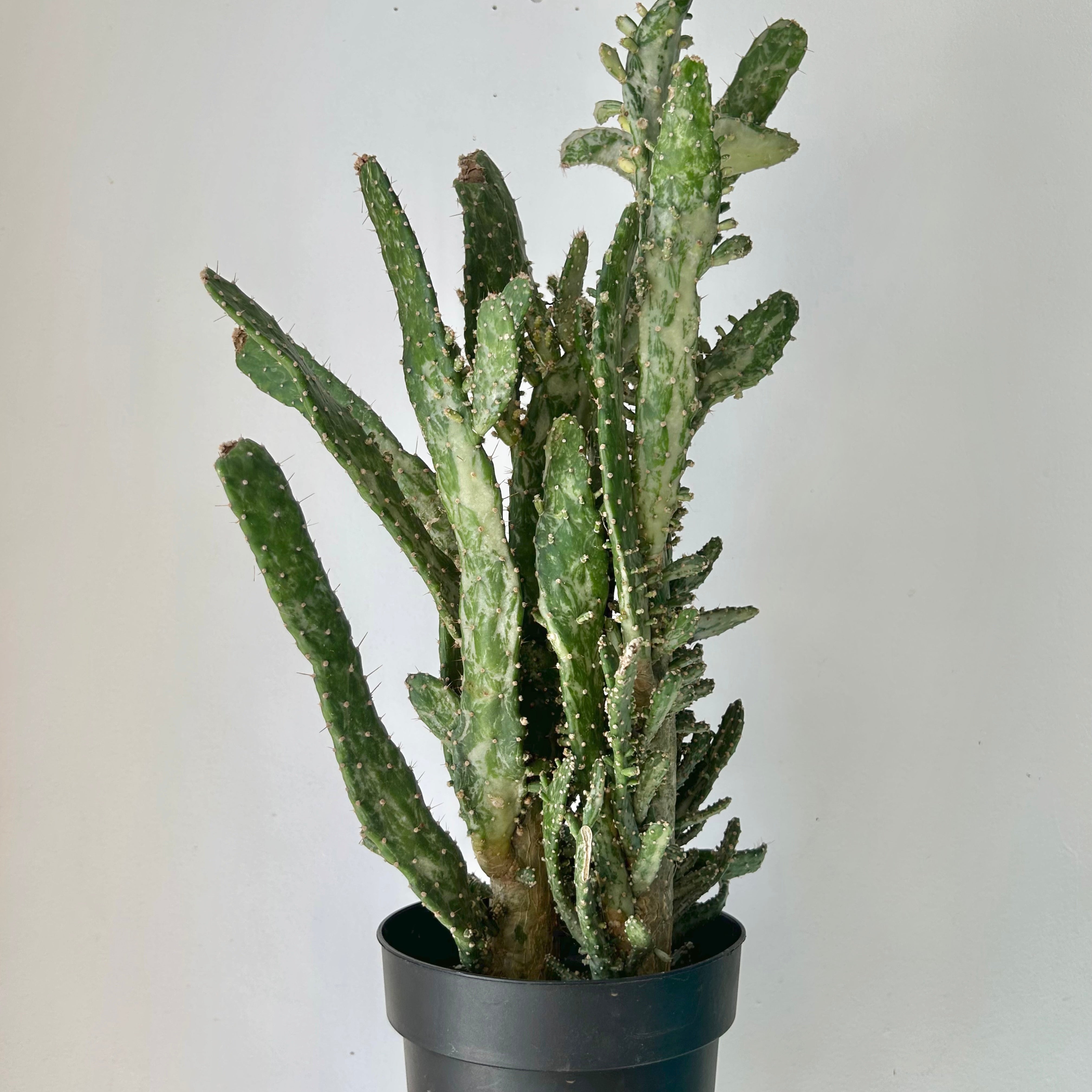 Variegated Opuntia “Joseph’s Coat” (two stalks) approximately 2 ft tall in 6.5”pot