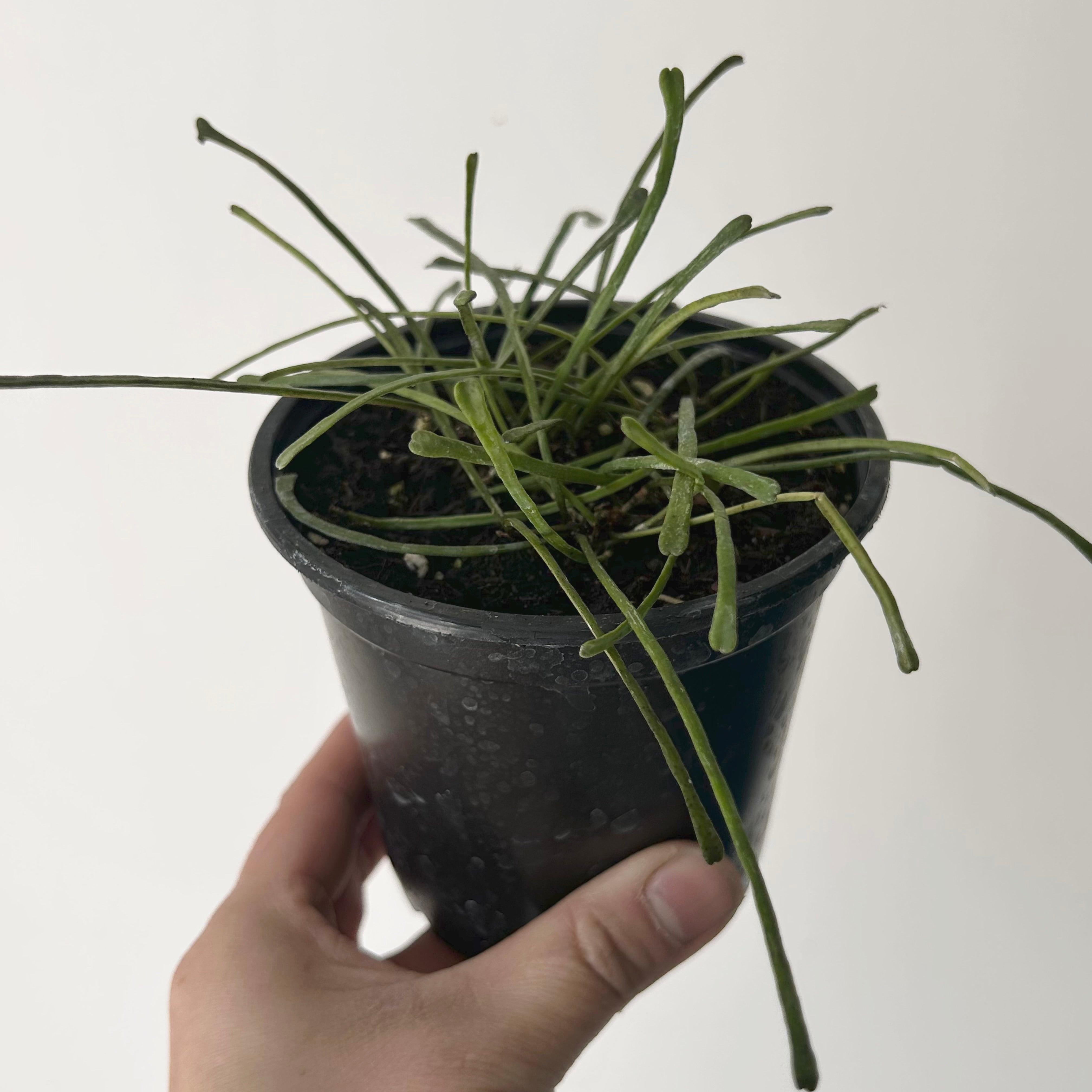 The H. retusa is cherished for its unconventional foliage and minimalist charm. Unlike most Hoya, the retusa features thin, flat, grass-like leaves as opposed to the more common waxy and glossy foliage we see with Hoya. The leaves grow sparsely along wiry stems, giving it a whimsical, airy appearance. The foliage has a delicate, understated elegance.